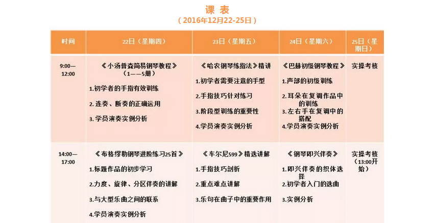 为给广大学员提供更优秀的师资资源和课程安排,我院特邀中央音乐学院作曲系教授及钢琴系副教授为本次培训的授课教师。由于授课教师时间安排,因此授课时间由原来的12月21日—24日调整为12月22日—25日,由此带来的不便,请大家谅解!