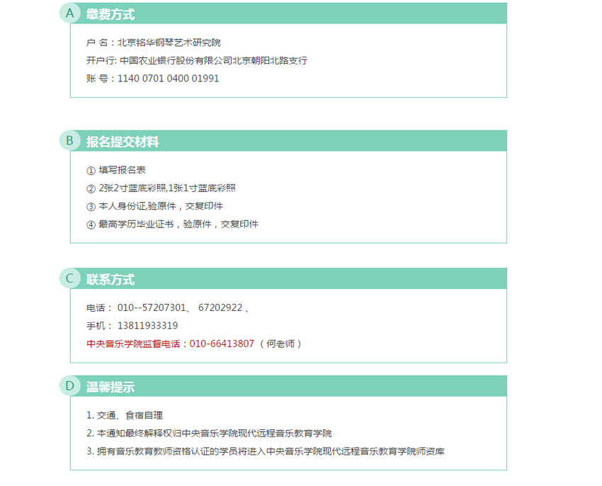 报名地址:中央音乐学院现代远程音乐教育学院北京音乐教师资格认证中心