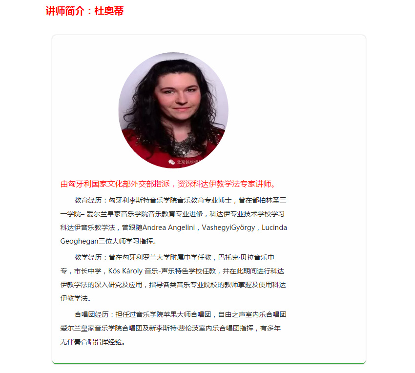 匈牙利科达伊教学法师资培训(北京站)限报40人